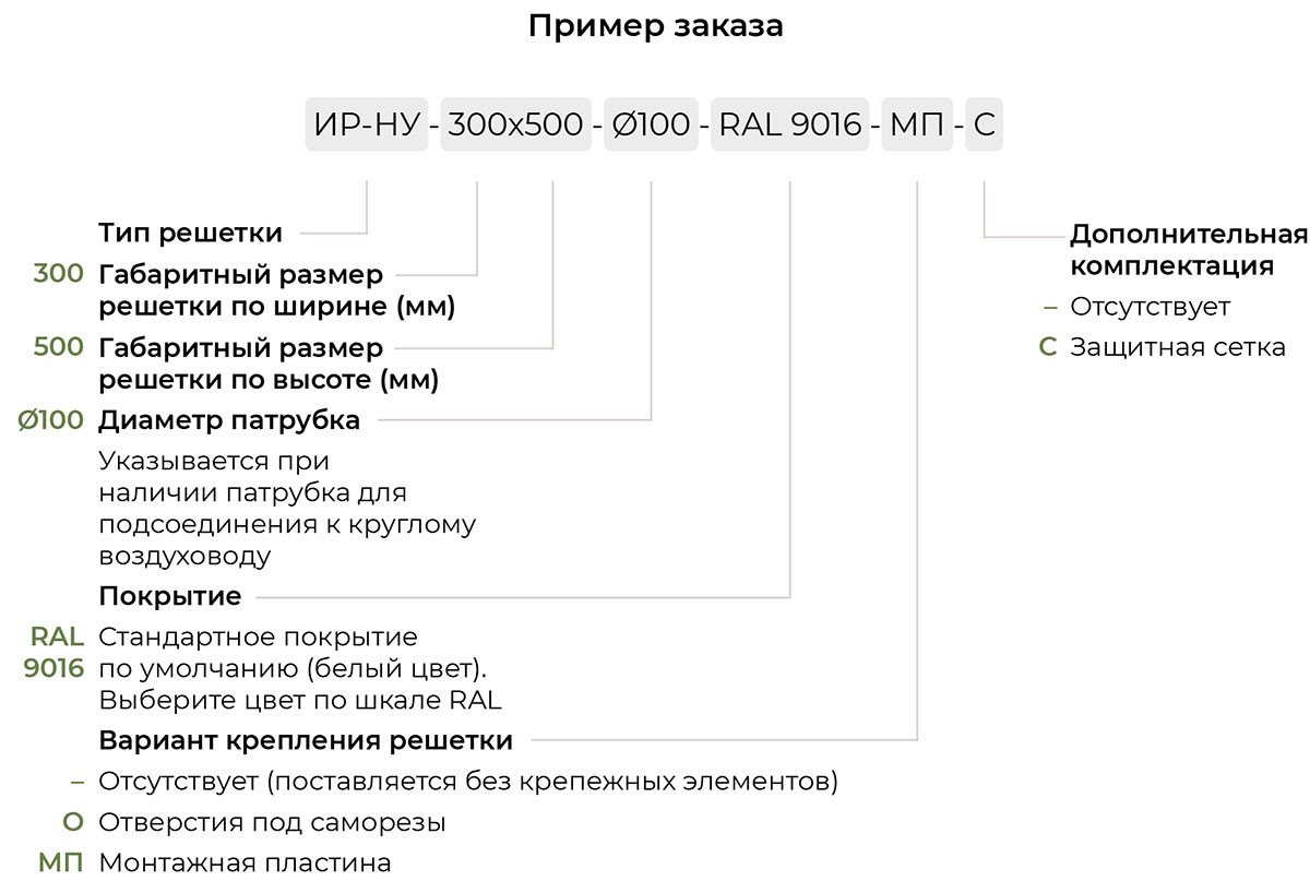 Решетка ИР-НУ по назначению и функциональности полностью повторяет инерционную решетку ИР-У. Единственным конструктивным отличием является накладной тип исполнения, ее рамка сделана без внешнего фланца. Решетка ИР-НУ накладывается на проем, либо полностью утапливается в проеме.