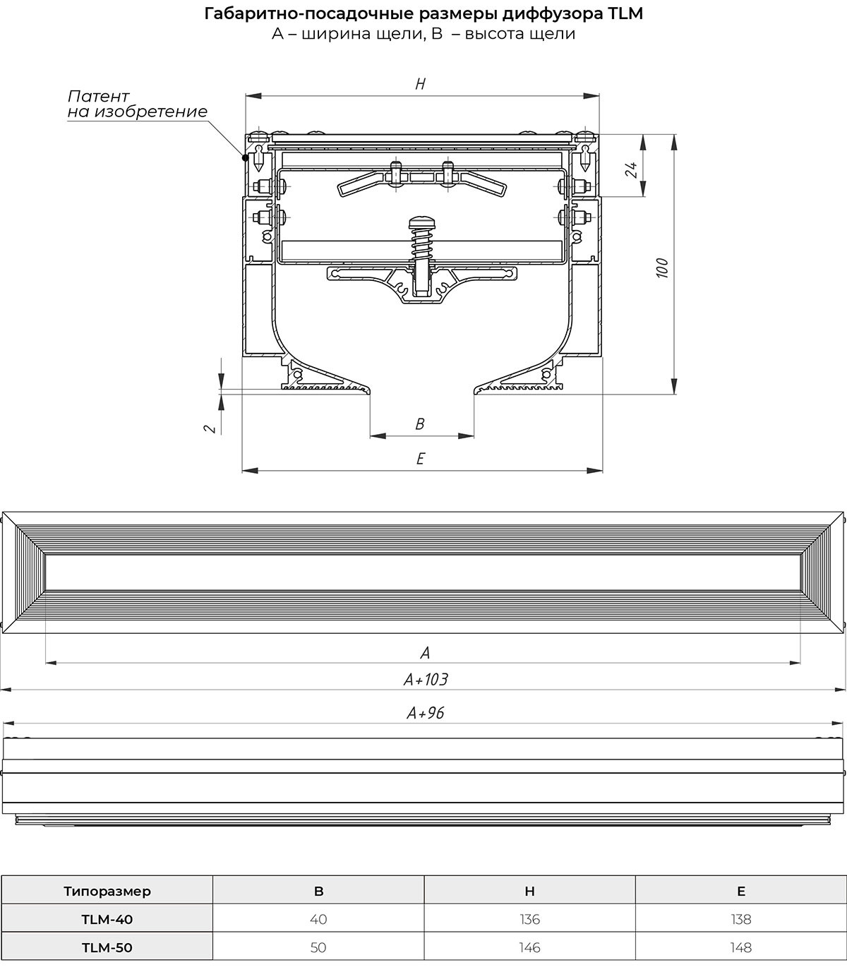 Конструкция вентиляционного щелевого диффузора обеспечивает эффективное распределение воздушных потоков с сохранением живого сечения диффузора и объема подаваемого воздуха при любом положении дефлектора.