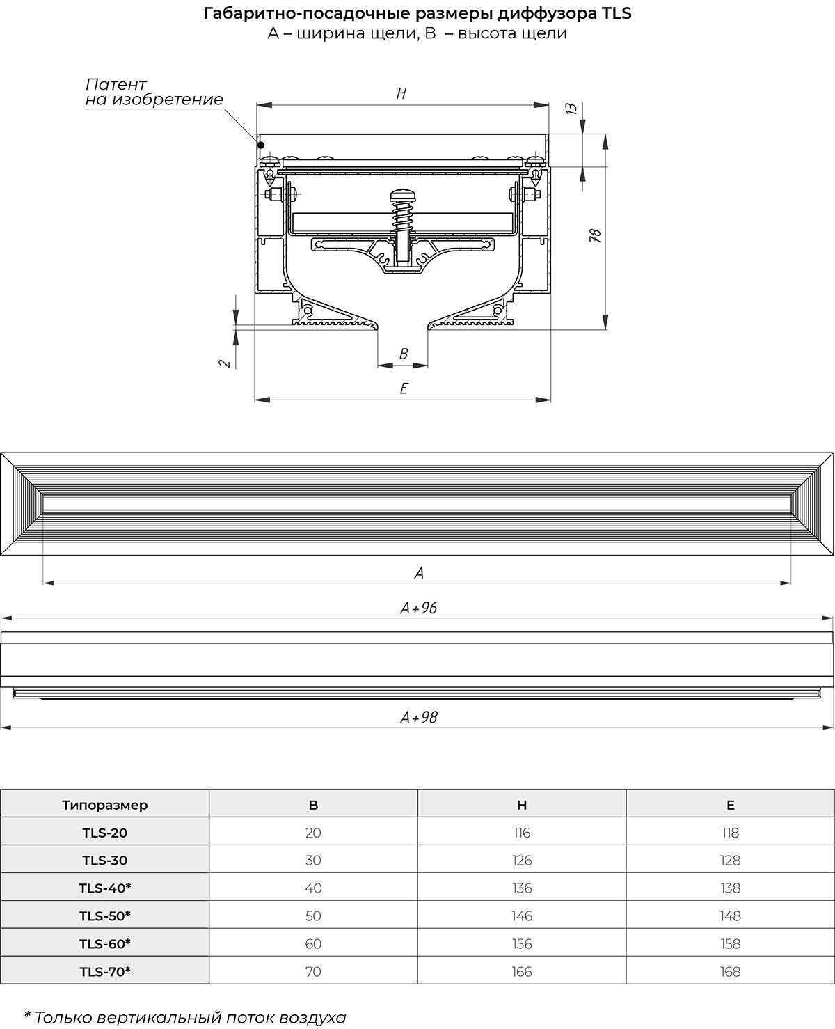 - Корректное распределение воздушного потока за счет сохранения живого сечения диффузора при любом размере щели и любом положении дефлектора.